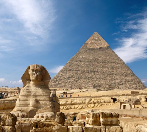 Después del desayuno, visitaremos el recinto de las Pirámides de Keops, Kefrén y Micerinos, una de las Siete Maravillas del Mundo Antiguo, y la Gran Esfinge, símbolo del poder del faraón Kefrén.